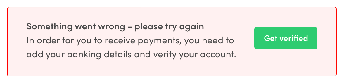 • If the user returned to failure URL, the status box is in verificationError mode. Failure can happen e.g. if the Connect onboarding page was refreshed or if the Account Link had already expired